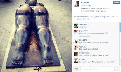 日曜日に、ハンドラーはInstagramに、”50セントが私の中に見たもの “というキャプションとともに、腹ばいになった裸の女性像の後ろ姿の写真を投稿しました。 その直後、カーティス・ジャクソンとしても活動する50セントは、「DANM!この写真は@chelseahandler crazy ass.lolを思い出させる」と同じ画像を投稿した。”