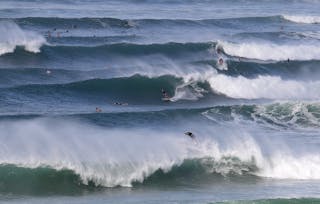 水深測定は、地球上で最も大きな波のいくつかにも関係しています。 北カリフォルニアのマーベリックスやポルトガルのナザレといった有名なビッグウェーブサーフスポットは、海底峡谷の恩恵を受けており、入ってくる波を屈折させてモンスターに集中させることができるのです。 ナザレの波は、深さ約5kmの海底峡谷から発生し、8階建てのビルに匹敵する高さの波を作り出します。